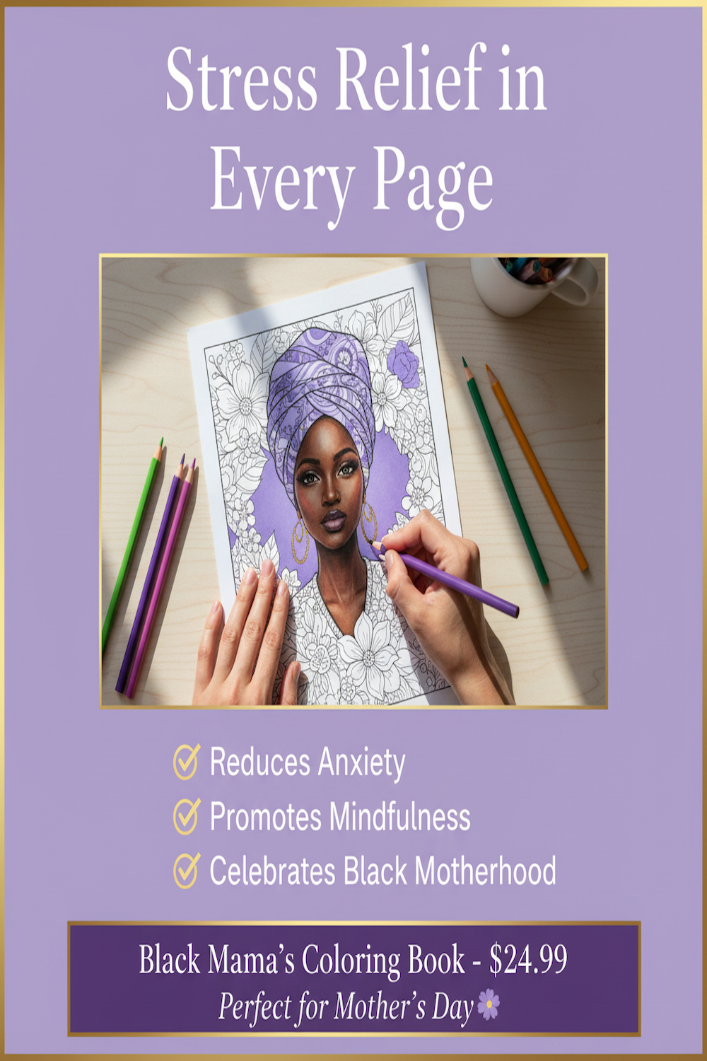 • Premium quality coloring pages celebrating Black motherhood
